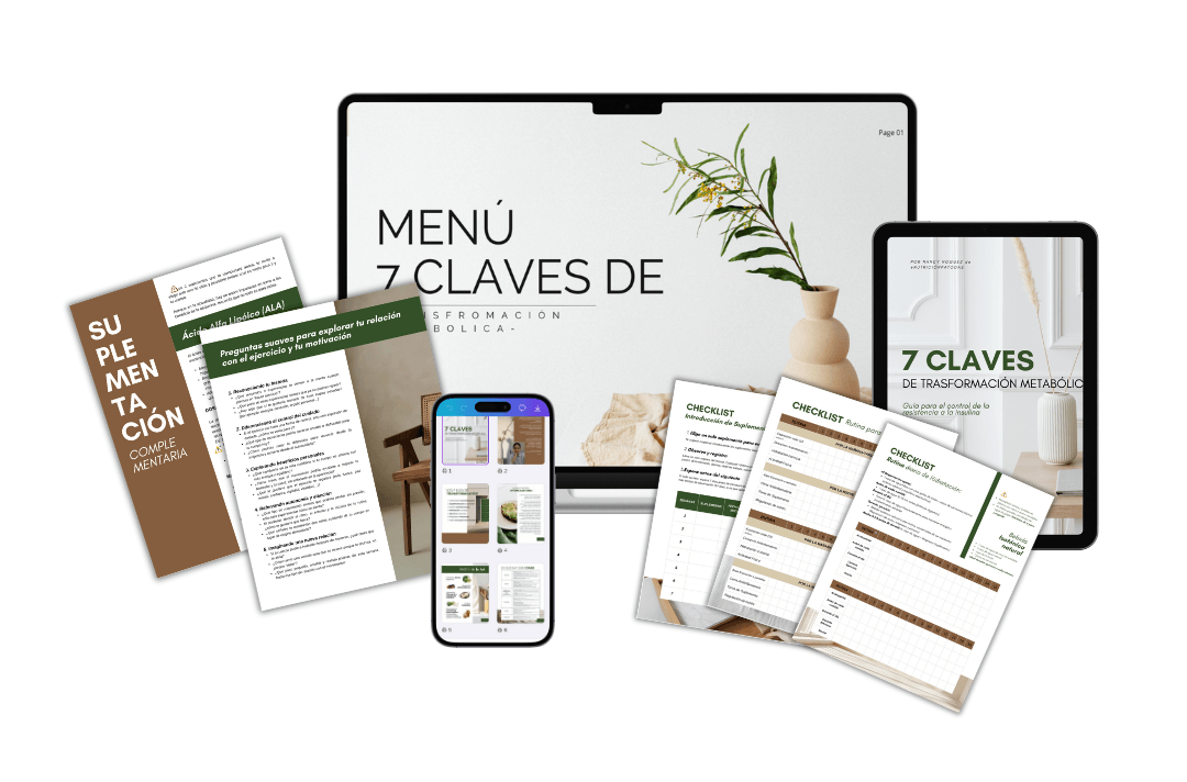 Por eso creé mi Ebook de Transformación Metabólica, un plan práctico, profundo y 100% accionable para que entiendas EXACTAMENTE qué hacer para recuperar tu energía, tu metabolismo y tu bienestar… sin obsesiones, sin dietas y sin sentir que vas sola.